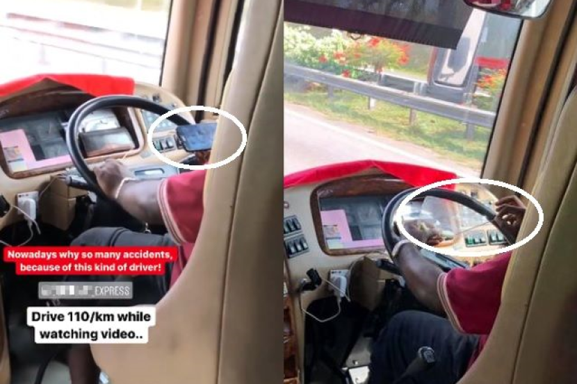 Menerusi perkongsian seorang pengguna bernama Benedict Ho di Facebook, kelihatan pemandu bas berkenaan selamba menonton video daripada telefon bimbitnya ketika sedang memandu.