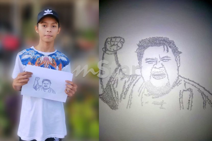 “Semakin banyak lakaran hitam, lebih banyak perkataan tu yang ditulis. Dianggarkan kira-kira 1,000 perkataan nama Abam dilakarkan membentuk potret arwah,” katanya sambil menambah mula berminat dalam lukisan sejak tahun dua.