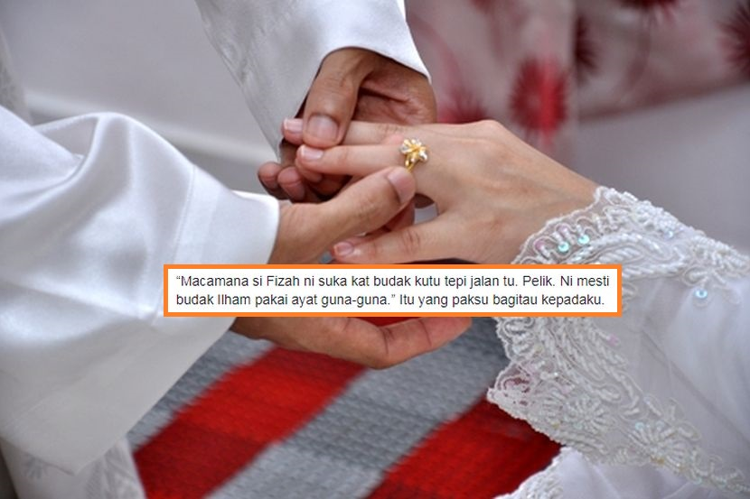 "Macam mana si Fizah ni suka kat budak kutu tepi jalan tu. Pelik. Ni mesti budak Ilham pakai ayat guna-guna. Itu yang paksu beritahu kepadaku. Beberapa siri pertengkaran antara Kak Fizah dengan paksu tercetus, demikian ceritanya.