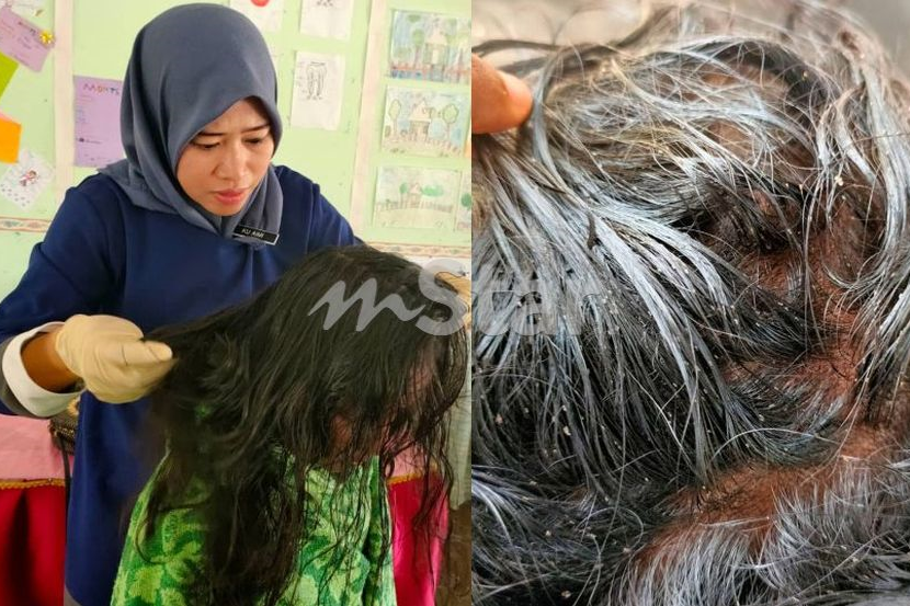 "Bila saya pergi tengok memang nampak dua tiga ekor kutu jatuh atas buku latihan murid saya darjah tiga. Dahlah hitam, besar pula tu," katanya.