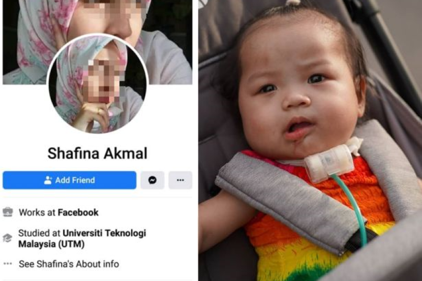Tangkap layar akaun Facebook palsu menggunakan nama Shafina Akmal yang mengutip sumbangan untuk Ainul.