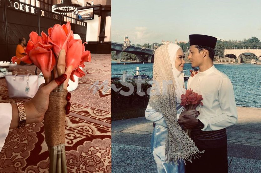 Namun berbeza pula dengan pasangan mempelai ini apabila bunga kantan dijadikan bunga tangan sebagai pelengkap aksesori pengantin perempuan.