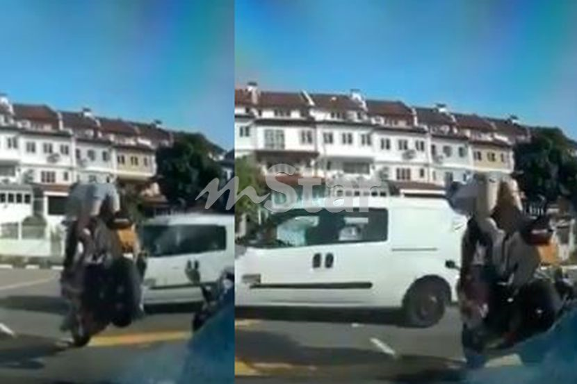 Menerusi rakaman pada papan pemuka (dashboard) sebuah kereta, penunggang motosikal berkenaan dan pemboncengnya yang baru bergerak dari simpang ketika lampu isyarat bertukar hijau hampir dilanggar oleh sebuah kenderaan berwarna putih yang memecut dari arah kanan.