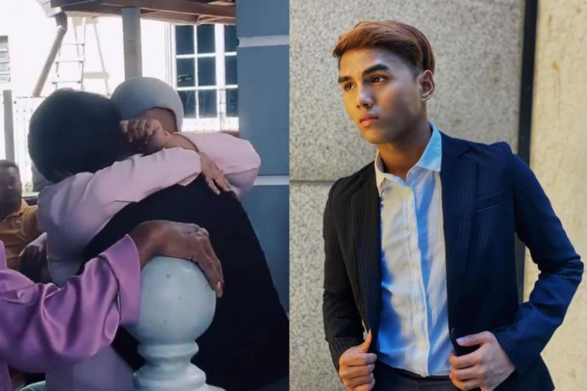 Pertemuan penuh emosi Dodiey (kanan) dan keluarga kandungnya pada Sabtu yang kini tular di media sosial.