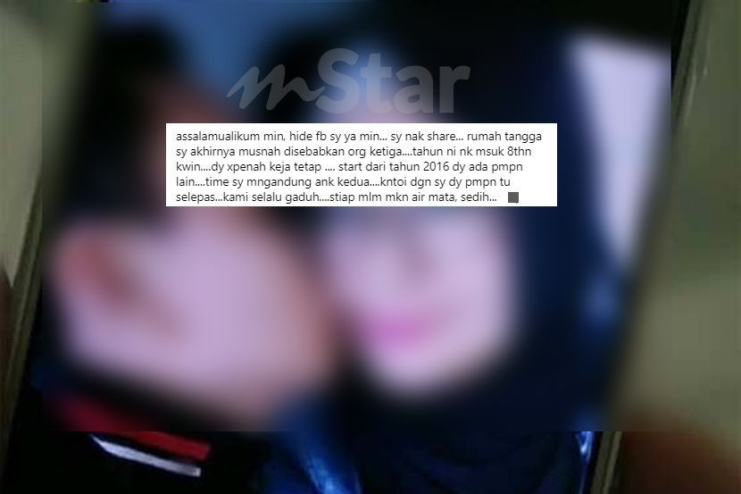 "BERMULA dari tahun 2016 dia ada perempuan lain, ketika saya mengandungkan anak kedua" Demikian kata seorang wanita yang meluahkan rasa sedih ketika berkongsi kisah kehancuran rumah tangga yang dibina hampir lapan tahun lalu, gara-gara sikap suami yang sering bermain kayu tiga. Berkongsi luahan rasa menerusi laman Facebook Kisah Rumah Tangga (KRT), wanita ini berkata kisah kecurangan suaminya terbongkar kali pertama selepas mereka sering bergaduh.ARTIKEL BERKAITAN: Kasihan si suami... isteri tetap tergilakan ex-bf walau dilayan bak puteri, tak kisah langgar taklik - “Nak minum-minum je dia kata”ARTIKEL BERKAITAN: Suami periksa telefon isteri, darah berderau baca grup WhatsApp famili - “Orang yang paling rapat, mendoakan emak aku mati!” "Sampai anak kedua berusia tujuh bulan baru dia tinggalkan perempuan tu. Lepas beberapa bulan dia ada perempuan lain pula. Lepas kantoi dia cari lain, lepas kantoi dia cari lain. "Saya tetap stay dengan dia, beri peluang sebab kesiankan anak. Saya mengandung anak ketiga pada 2018, dia ada lagi perempuan. Masa saya mengandung enam bulan, kami bergaduh teruk hingga saya paksa dia lepaskan saya. "Dekat usia kandungan sembilan bulan, dia minta rujuk balik. Disebabkan anak, saya terima kerana dia cakap nak berubah. Saya beri juga peluang. Selepas tu dia tak ada perempuan dah," ceritanya. Sebahagian perkongsian wanita berkenaan mengenai kisah rumah tangganya yang runtuh gara-gara sikap suami dan juga kehadiran orang ketiga. Bagaimanapun panas yang disangka hingga ke petang, rupa-rupanya hujan di tengah hari. Segala-galanya bermula apabila mereka berniaga makanan secara kecil-kecilan dengan membuat perkhidmatan Cash On Delivery (COD) untuk menampung perbelanjaan dapur ketika waktu Perintah Kawana Pergerakan (PKP) beberapa bulan lalu. "Perempuan tu pernah order sate pada April dan bermula dari situ mereka WhatsApp, call, video call... suami cakap dia bujang. Saya sabar sebab saya mengandung lagi masa tu. "Bulan Jun saya bersalin caeserian, hari keempat dibenarkan pulang ke rumah, saya minta nak tengok telefon dia. Dia tak bagi, saya paksa dia buka password. Wanita ini mendedahkan suaminya beberapa kali menjalinkan hubungan bersama wanita lain sejak 2016. Gambar hiasan. "Tak sangka perempuan tu post status Whatsapp dia (suami) tengah makan dekat rumahnya. Ya Allah, luluh hati saya," ceritanya lagi. Sepanjang tempoh berpantang, wanita ini hanya bersabar dan berendam dengan air mata saban malam dek kerana perangai suami yang masih tidak serik bermain kayu tiga. "Saya dekat rumah, dengan belah perut (caeser) langsung dia tak fikir perasaan saya. Saya baling telefon dia sampai pecah... dia menangis-nangis. Tak apa, saya repair semula telefonnya. "Saya minta dia lepaskan saya dan esoknya, dia lafazkan cerai. Saya sedih sangat tapi saya terpaksa nekad untuk tak bersedih lagi. Suami wanita ini kerap kali menukar kata laluan untuk mengelakkan tembelangnya pecah. Gambar hiasan "Saya reda dengan apa yang berlaku cuma terkilan sangat apa dia buat dekat saya. Dan selesai kes saya dengan dia awal Ogos lalu. Dia ada juga minta saya rujuk balik. "Saya sayang dia dan anak-anak tapi saya tak mahu sebab sampai sekarang dia contact perempuan tu. Baik saya undurkan diri. Nak move on tu perit sangat tapi apakan daya. Saya kena terima dengan hati terbuka, ikhlaskan apa yang berlaku," tulisnya lagi. Sehingga ini perkongsian tersebut meraih sehingga 133 shares selain dibanjiri ratusan komen netizen yang turut sama memberikan kata-kata semangat buat wanita tersebut. Nak macam-macam info? Join grup Telegram mStar!