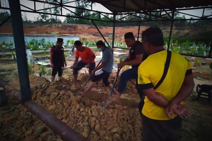 Urusan pengebumian seorang lelaki yang dikatakan terjatuh daripada tingkat 17 sebuah pangsapuri. Foto Facebook Muhammad Rafieudin Zainal Rasid