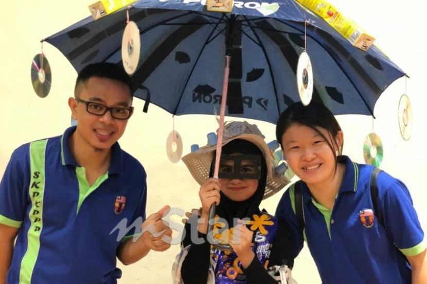 Mohamad Khazaen bersama dua pelajarnya, Safiya (tengah) dan Lim Yong Loo. Empat tahun mencurahkan bakti, Mohamad Khazaen mengakui dirinya jatuh cinta dengan bidang pendidikan khas.