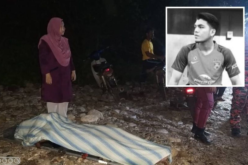 Allahyarham Faris Iskandar (gambar kecil) meninggal dunia kerana lemas selepas berjaya menyelamatkan dua rakan yang lemas di Sungai Kelemin, Hulu Terengganu, Jumaat lalu. Foto: Kredit Twitter _Han_IF