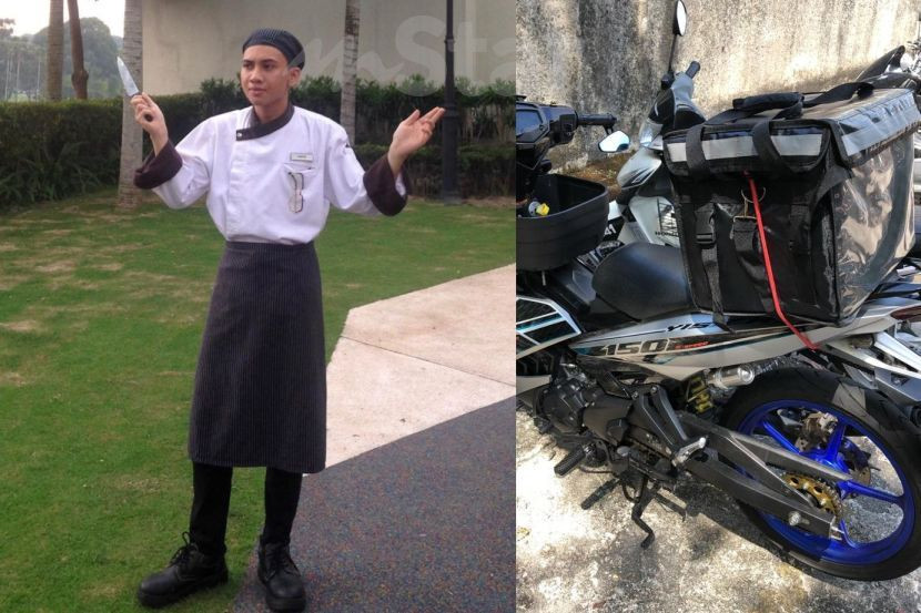 (kiri) Syed Hafizi berpengalaman dalam bidang kulinari berniaga selepas hilang pekerjaan. (kanan) Motosikal yang digunakan untuk menghantar tempahan. Foto ihsan Syed Hafizi Saiyid Rosli
