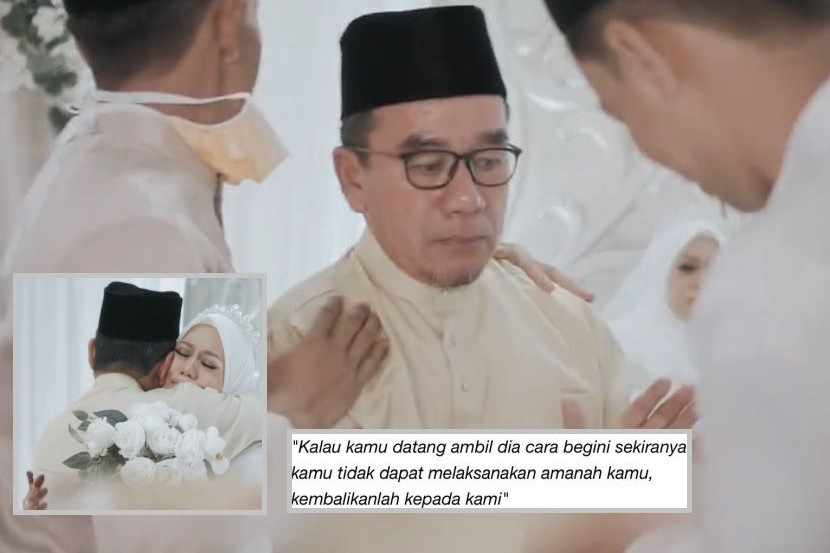 MOMEN spontan yang dirakam ternyata lahir dari hati ikhlas apabila kata-kata penuh indah dan bermakna diluahkan sehingga berjaya meruntun hati netizen. Itulah hari yang pastinya tidak akan dilupakan seorang bapa apabila terpaksa melepaskan anak perempuan kesayangannya kepada jejaka pilihan hati anaknya. Menerusi video berdurasi 44 saat yang tular di media sosial, seorang bapa dilihat memberi pesanan penuh menyentuh hati kepada pengantin lelaki.ARTIKEL BERKAITAN: ‘Jodoh’ datang nak tolong, boleh pula gadis ni lari masuk kereta... temperature turun, pasangan ini naik pelamin! - “Kisah cinta kami memang real”ARTIKEL BERKAITAN: Isteri bagi lesung batu, suami balas periuk 5 tingkat! Pengantin tak malu berbalas hantaran sempoi - “Senang tak payah ada dulang bagai” Dia berpesan agar menantunya itu menjaga anak perempuannya dengan penuh kasih sayang. Awanis selamat disatukan dengan jejaka pilihan hatinya. "Saya serahkan anak saya kepada kamu, saya serahkan amanah saya. Kamu jaga amanah saya sebagaimana saya menjaga dia. "Kalau kamu datang ambil dia cara begini sekiranya kamu tidak dapat melaksanakan amanah kamu, kembalikanlah kepada kami," demikian kata si bapa, seolah-olah merayu agar menantunya itu menjaga anak perempuannya dengan baik. Bercerita kepada mStar, pengantin perempuan Awanis Abdul Rahman, 30, terkejut apabila video pada hari pernikahannya dengan suami, Safwan Zakwan Zulkipli, 30, pada 20 Jun lalu tiba-tiba menjadi tular. "Video ni pada mulanya viral di Twitter tapi saya tak ada Twitter. Saya dapat tahu pun dari kawan-kawan yang tag dekat Instagram dan Facebook. "Memang kami sekeluarga terkejut sebab video ni tiba-tiba viral. Sebenarnya saya dan suami selamat diijabkabulkan pada 20 Jun lalu," katanya. Gambar kenangan bersama ibu bapa masing-masing. Mengimbau kembali momen itu, anak sulung lima beradik ini mengakui turut sebak dengan kata-kata bapanya, Abd Rahman Abd Latip, 62. "Masa tu saya dapat dengar dengan jelas. Sebak, sedih semua ada. Saya tak sangka ayah akan cakap macam tu selepas selesai majlis nikah. Kalau kamu datang ambil dia cara begini sekiranya kamu tidak dapat melaksanakan amanah kamu, kembalikanlah kepada kami. ABD RAHMAN ABD LATIP Bapa "Hubungan saya dan keluarga terutama sekali ayah amat rapat. Mungkin dia sebak sebab kali pertama lepaskan anak perempuan pada orang lain. "Lagipun ini majlis pertama yang dibuat di rumah dan pernikahan anak perempuan sulung dalam keluarga," katanya yang bekerja sebagai juruukur bahan. Dalam pada itu, Awanis turut menyifatkan insan disayanginya itu sebagai seorang yang tegas dan bertanggungjawab. Abd Rahman gagal menahan sebak selepas anak perempuan sulungnya bergelar isteri kepada jejaka pilihan hatinya. "Ayah seorang yang bertanggungjawab sepanjang membesarkan kami lima beradik. Dia juga jadi tempat rujukan saya untuk pelajaran, karier dan jodoh. "Dia juga amat tegas dalam mendidik anak-anak. Kami memang diajar untuk makan semeja sebab abah kata apa-apa family first," katanya. Tambah Awanis, dia dan suaminya sepatutnya disatukan pada 4 April lalu tetapi majlis terpaksa ditangguhkan akibat Perintah Kawalan Pergerakan (PKP). Nak macam-macam info? Join grup Telegram mStar! View this post on Instagram Kasih seorang ayah... pesanan yang cukup meruntun hati. Pasti sukar untuk melepaskan anak perempuan kesayangan yang dijaga dengan penuh kasih sayang selama ini Kredit video @kretpictures #mstaronline #mstar15tahun #mstarSS A post shared by mStar (@mstaronlineofficial) on Oct 31, 2020 at 6:44pm PDT