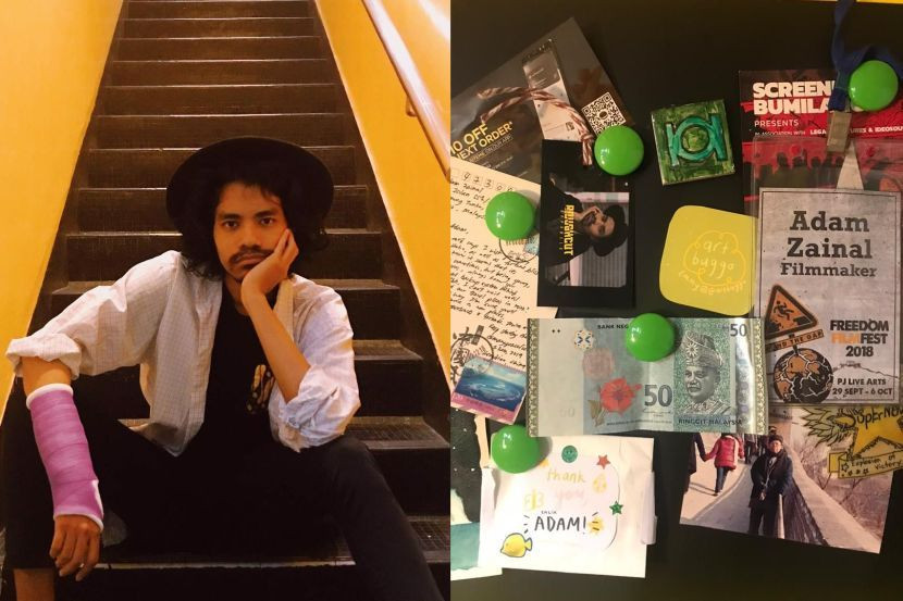 (kiri) Adam berkongsi pengalamannya dibantu seorang wanita di kawasan parkir. (kanan) Duit RM50 yang diletakkan pada 'magnet board'.