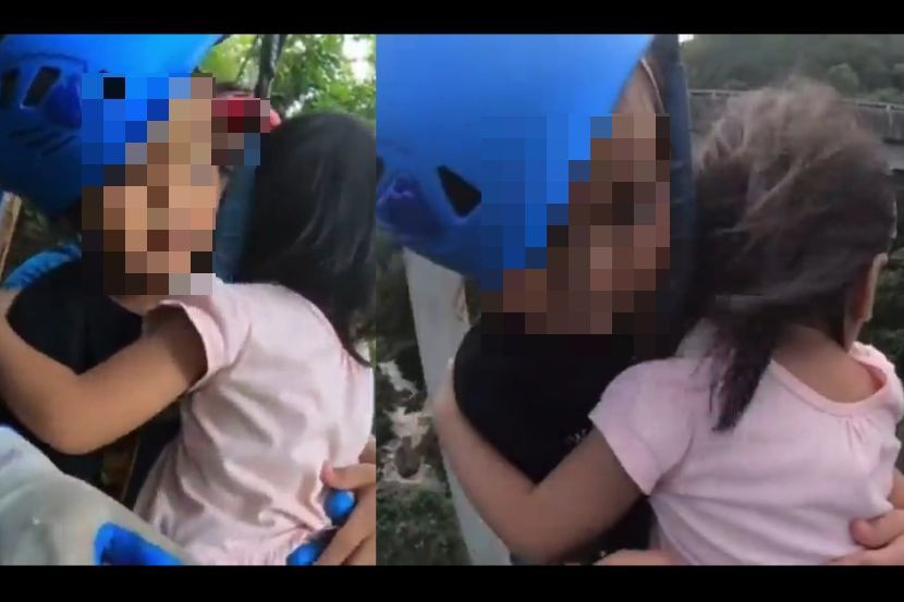 Video yang tular sejak hujung minggu itu menunjukkan dua kanak-kanak lelaki dan perempuan, dipercayai adik-beradik berpaut antara satu sama lain melakukan aktiviti flying fox.