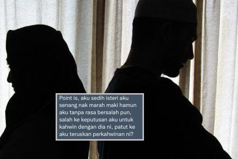 "Aku sedih isteri aku senang nak marah, maki hamun aku tapa rasa bersalah pun. Salah ke keputusan aku kahwin dengan dia? Patut ke aku teruskan perkahwinan ni?," soalnya meminta pandangan netizen.