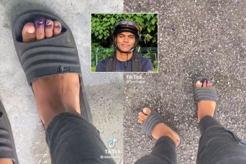 Di aplikasi TikTok, seorang pemuda mencuri perhatian ramai apabila dia memuat naik video memaparkan jari kakinya seperti dicelup dakwat rona ungu gelap itu.