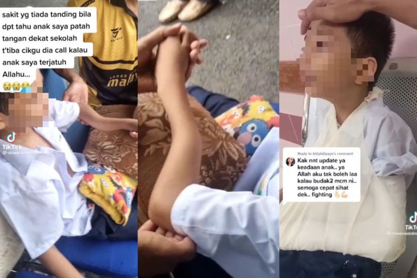 Hantaran terakhir wanita ini di TikTok menunjukkan anaknya menangis teresak-esak setelah tangannya dibalut kain anduh di sebuah hospital.