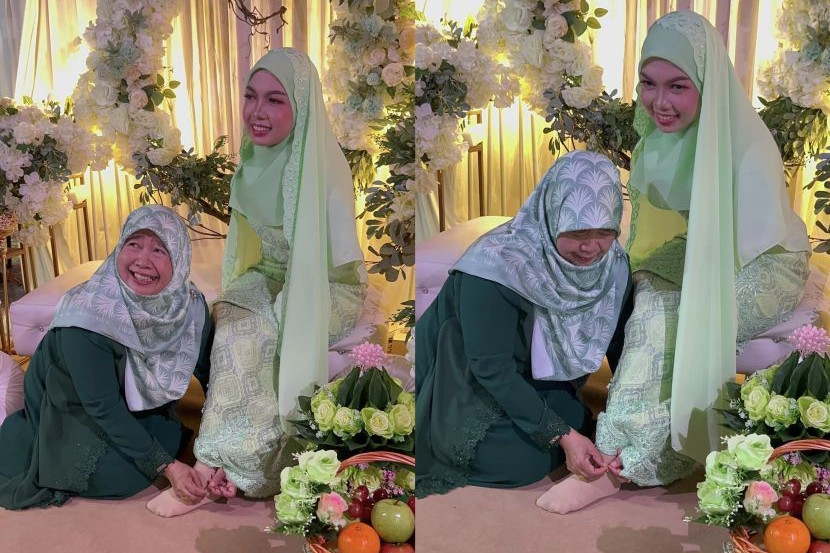 Namun apa yang mencuri tumpuan ialah foto seorang wanita dipercayai bakal ibu mentuanya memakaikan gelang kaki kepadanya.