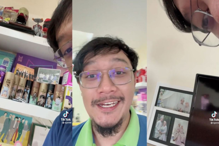 Ujar pengguna TikTok dengan nama @syznld, isterinya menyusun semua koleksi cenderamata kumpulan BTS di rak khas yang terletak di dalam bilik tidur mereka.
