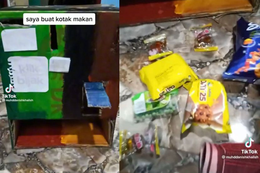 Demikian antara komen netizen terhadap perkongsian video memaparkan hasil kreativiti seorang kanak-kanak yang mencipta mesin makanan ala-ala vending machine menggunakan kotak terpakai.