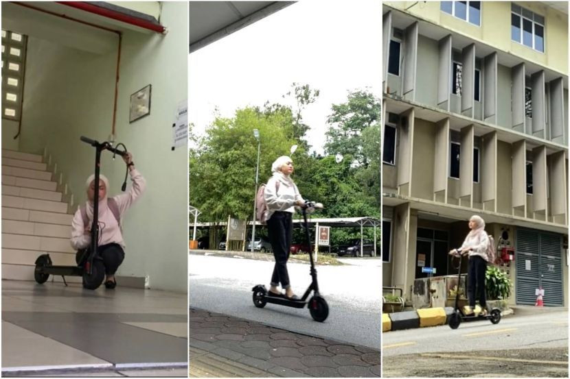 Dalam satu video tular di TikTok, Nuha Khalidah, 23, dilihat begitu selesa menggunakan e-skuter untuk bergerak ke kelas.