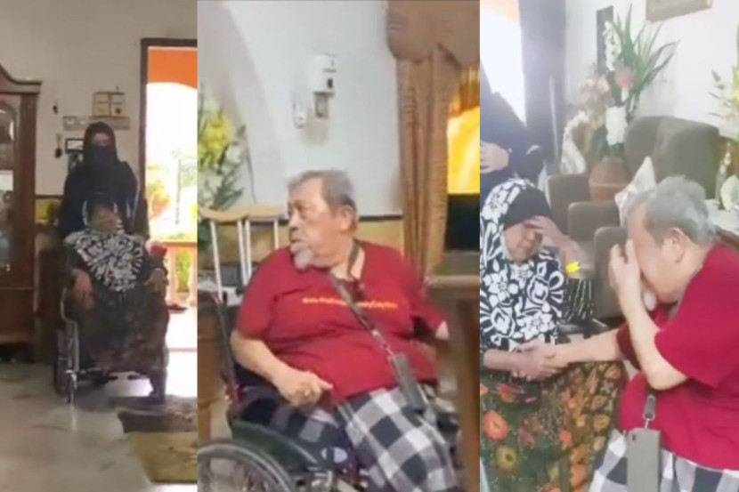 Menerusi perkongsian di TikTok Fhm1709, kelihatan kedua-dua warga emas yang bergerak menggunakan kerusi roda itu saling berpelukan disulami linangan air bagi melepaskan rindu.