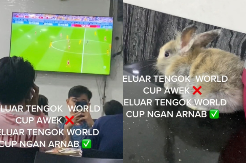 TEMAN wanita tak ada, arnab kesayangan diajak teman tengok Piala Dunia 2022!