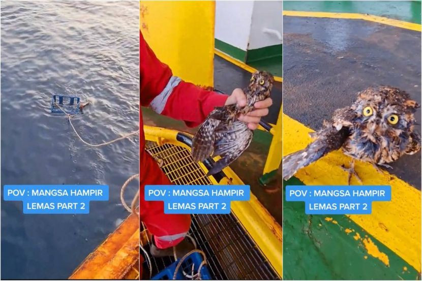 Bercakap kepada mStar, Fahmy Anuar, 39, berkata, 'operasi' menyelamatkan burung hantu itu menggunakan bakul yang diikat pada tali sebelum diangkat ke atas kapal, seperti sebuah pelampung.