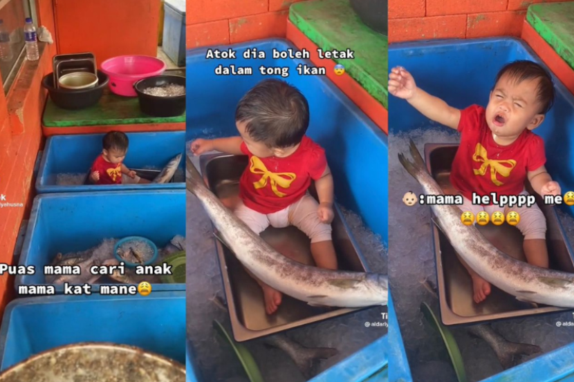 Setelah diperiksa, Husna ada bersama bapanya namun dia tidak menyangka si kecil itu diletakkan di dalam bekas sejuk beku yang mengandungi ikan.