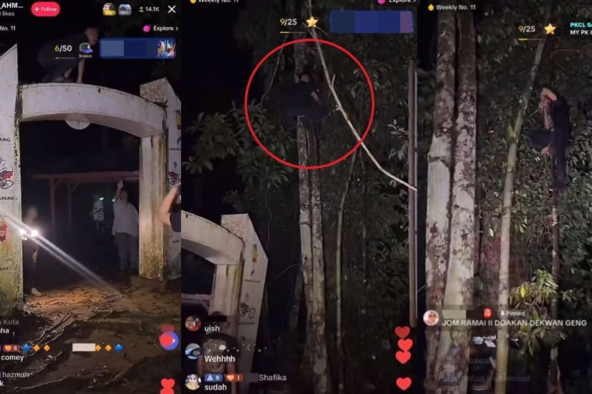 KEBERANIAN seorang individu dikenali sebagai Loy Ahmad bersama rakan-rakannya untuk cuba menjejaki aktiviti paranormal membawa padah apabila salah seorang daripada mereka dirasuk makhluk halus. Menerusi video tular, seorang pemuda dikenali sebagai Iwan atau Dekwan dilihat sedang merangkak di atas pintu gerbang konkrit sambil diperhatikan rakan-rakannya. Pemuda yang dirasuk itu kedengaran turut membuat suara garau seperti seekor haiwan yang ganas. Pemuda yang dirasuk merangkak di atas pintu gerbang sewaktu rakannya membacakan ayat suci al-Quran. "Hey, kalau kau betul-betul berani, kau turun ke bawah. Kau panggil semua yang ada," jerit salah seorang ahli kumpulan itu. "Nak panjat kot mana pun tak boleh ni," ujar seorang lagi lelaki yang buntu sebelum rakannya mula membacakan ayat-ayat suci al-Quran. Berdasarkan tulisan pada pintu gerbang itu, kejadian dipercayai berlaku di kawasan hutan berdekatan sebuah gunung. Eloklah kena sampuk... dah pergi tempat begitu nak buat content, dapatlah. NETIZEN Tidak lama kemudian, lelaki yang dirasuk itu dilihat sedang memanjat pokok dengan laju sebelum beberapa rakannya menjerit kebimbangan. "Allahuakhbar, Wan! Bukan dah ni. Bukan ni. Pokok kecil sangat ni. Iwan... geng, doa yang baik-baik je. Kirim doa dari jauh. "Ya Allah ya Tuhanku permudahkan urusan kami ya Allah. Iwan, lawan Iwan. Allahuakhbar," ujar seorang lelaki yang sedang memerhatikan dari bawah. ARTIKEL BERKAITAN: Jangan pasang lagu tu! Gadis kolej dirasuk ‘roh’ puteri bunian Ulek Mayang... Tiba-tiba buka langkah tarian lemah gemalai ARTIKEL BERKAITAN: Perabot bergerak sendiri selepas pemuda tolong gadis dirasuk! Jiran merungut bising, tunjuk rakaman CCTV tak berani buka pula Sambil menjerit-jerit di atas pokok, lelaki yang dirasuk itu akhirnya jatuh ke bawah, namun dia sempat disambut oleh beberapa rakannya. Selepas berjaya diselamatkan, lelaki itu dilihat terbaring tidak sedarkan diri sambil dikelilingi rakan-rakannya yang cuba membantu. Sedutan video siaran langsung (live) TikTok itu turut tersebar ke laman Twitter selepas ia dimuat naik oleh seorang individu. "Live TikTok malam tadi. Mereka kata terkena sampuk semangat mawas. Wallahualam," ciap @faIiqfahmie. Video live TikTok itu turut dikongsi ke laman Twitter. Menjengah ke ruangan komen, ramai netizen meluahkan rasa seram menonton video itu, tak kurang juga yang berjenaka tentang kejadian itu. "Dekwan ni senang 'masuk' (dirasuk). Hari tu pergi Indonesia pun dia kena juga. Dah selalu kena tapi tetap bawa Dekwan ni juga masuk buat paranormal. Tak faham betul. "Eloklah kena sampuk. Dah pergi tempat gitu nak buat content, dapatlah. Kacau tempat dia, dia kacau kau balik apa susah. "Tak pernah faham orang yang buat content masuk hutan semata-mata nak buat aktiviti paranormal. Kau nak cabar siapa sekarang? tulis beberapa netizen. Jadilah sebahagian daripada geng mStar! Follow kami di Telegram, Twitter, TikTok, Facebook, Instagram dan YouTube