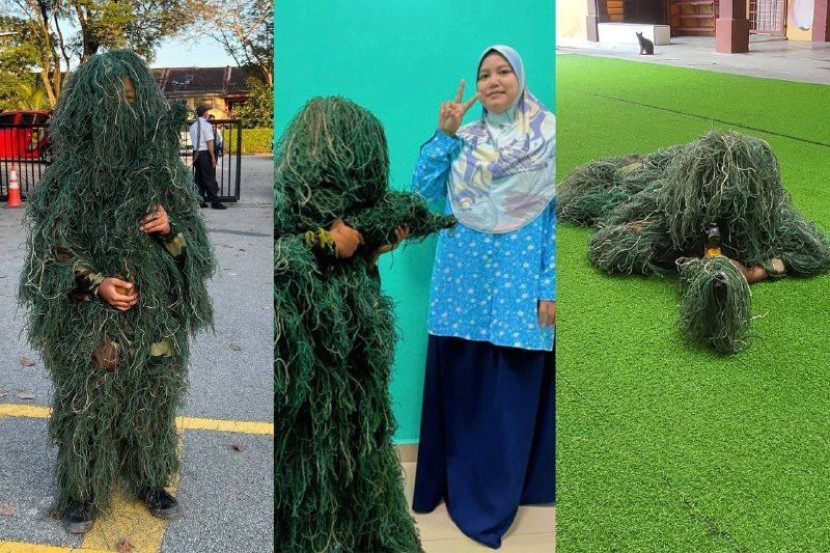 "Yang kelakarnya, ada cikgu dan budak lain sampai tak kenal itu Syamil, memandangkan kostum dia penuh dengan rumput tiruan untuk penyamaran, siap topi tutup kepala.