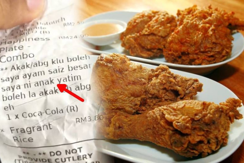Manakala permintaan seterusnya adalah yang paling menyentuh perasaan apabila pelajar tersebut bermain sentimen dia merupakan anak yatim demi meminta ayam goreng bersaiz besar.