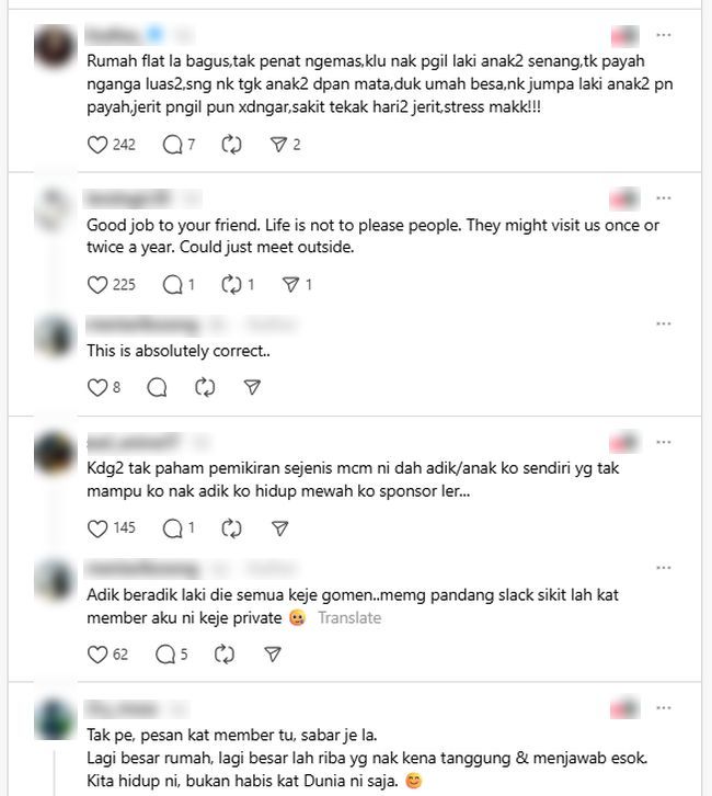 Seorang individu kongsi kisah rakan perempuan yang dihina keluarga mentua kerana membeli rumah flat.