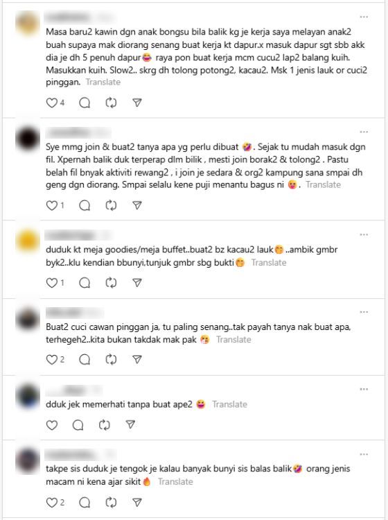 "Kalau saya, pergi dekat saudara-mara mana yang sekepala dengan saya yang boleh bawa borak. Dah in-law tak layan, kita pergi buat meriah dengan saudara lain.