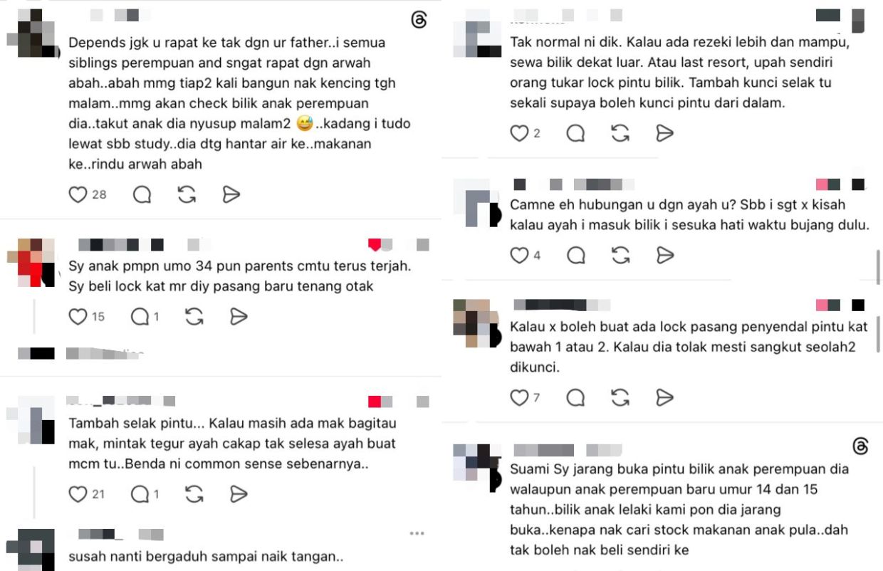 - Perkongsian itu mendapat perhatian netizen yang menekankan kepentingan privasi dan mencadangkan solusi seperti pasang kunci bilik.