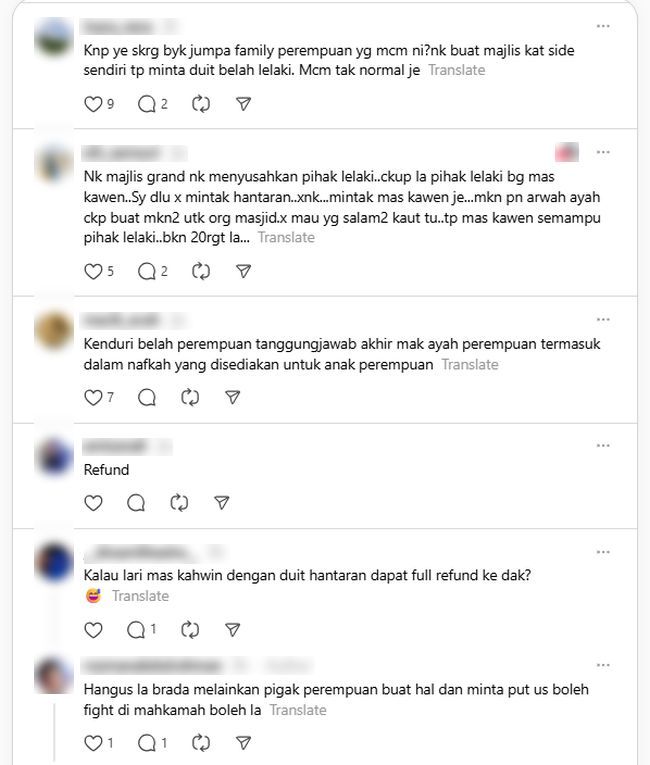 Perkongsian individu tersebut mengundang perhatian netizen dengan rata-ratanya turut mengecam tindakan keluarga pihak perempuan yang dilihat seakan-akan cuba mengambil kesempatan kepada bakal pengantin lelaki.