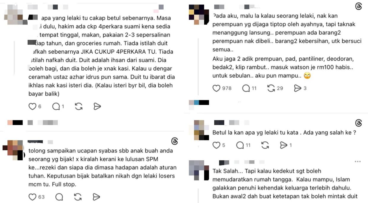 "Jadi banyak pengajaran kehidupan saya belajar dari situ mengenangkan pengorbanan arwah mak saya. Sampai sekarang pun saya tetap utamakan hak adik-adik perempuan. Hidup kaum hawa!" komen beberapa netizen.