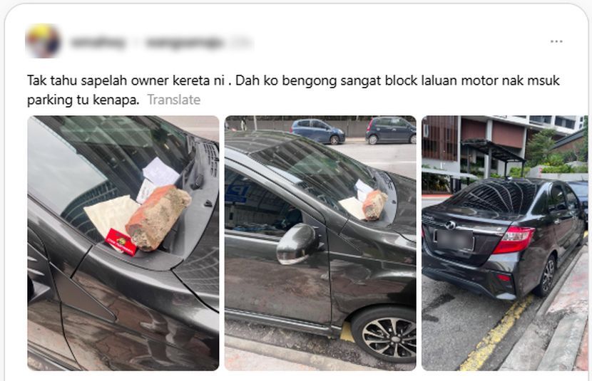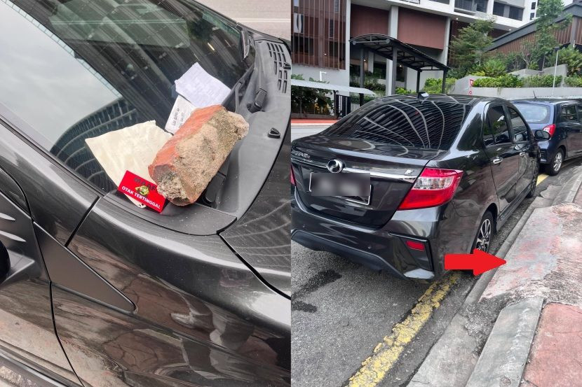 Pemilik kenderaan lain tinggalkan nota amaran dan seketul bata di cermin kereta sebagai tanda protes.