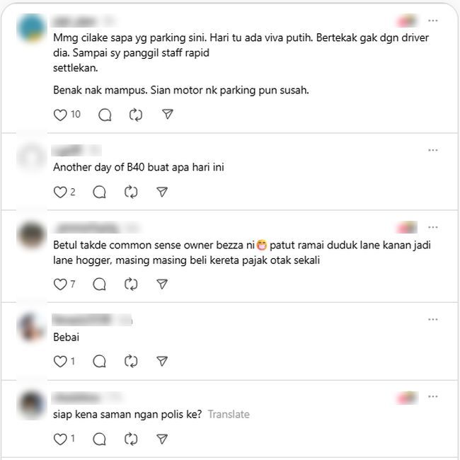 Menerusi satu hantaran di laman Threads, seorang individu meluahkan kemarahan terhadap sikap tidak bertanggungjawab seorang pemandu yang memarkir keretanya tetapi menghalang laluan motosikal.