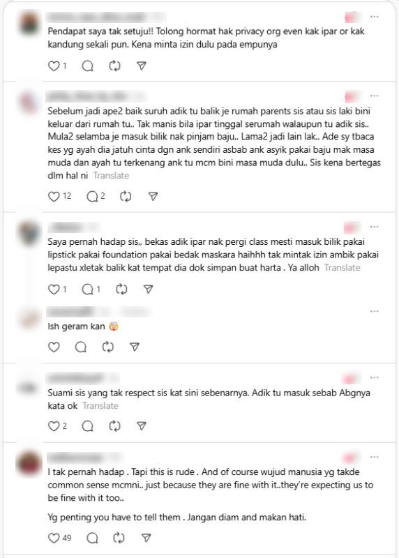 Menerusi satu perkongsian di laman Threads, seorang wanita meluahkan rasa kecewa dengan sikap adik iparnya yang meminjam baju tanpa meminta kebenaran terlebih dahulu.