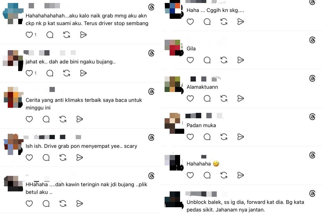 "Unblock semula. Cakap baik kau pergi pejabat agama. Kau dah mengaku bujang. Silap-silap jatuh talak. Lepas tu baru block semula," komen beberapa netizen.