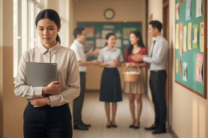 - Sedih lihat guru baru disambut mesra sementara dirinya diabaikan.