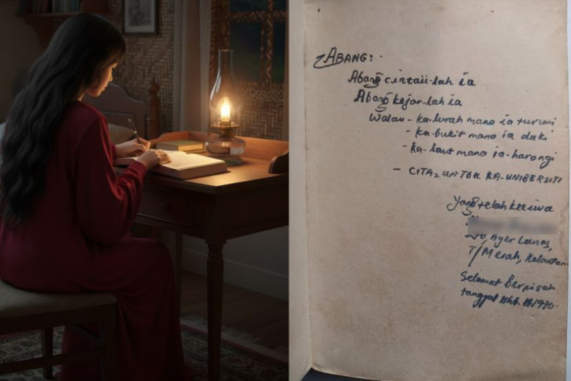 Ia bertulis, Abang, cintailah ia. Abang, kejarlah ia. Walau ke lurah mana ia turuni, ke bukit mana ia daki, ke laut mana ia harungi, cita-cita untuk ke universiti. Selamat berpisah tanggal 11.11.1970," demikian isi kandungan nukilan tersebut.