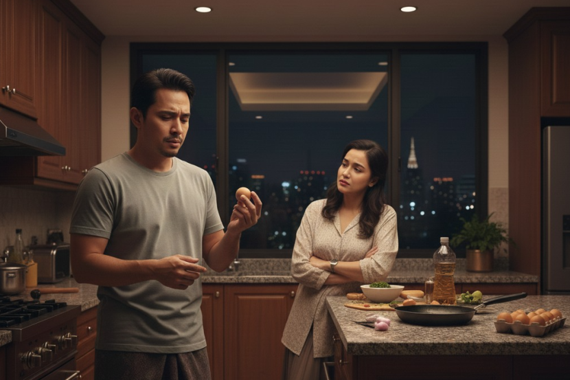 - Pertengkaran berlaku kerana dia terpaksa tampung perbelanjaan rumah dan mengungkit soal makan minum.