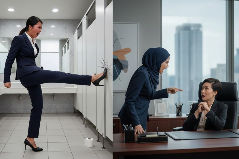 - Wanita dimarahi bos ketika dalam tandas kerana telefon pejabat berdering.