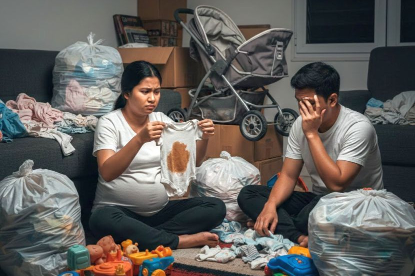 - Pakaian dan mainan bayi banyak koyak, bertahi lalat, tak boleh guna semula.
