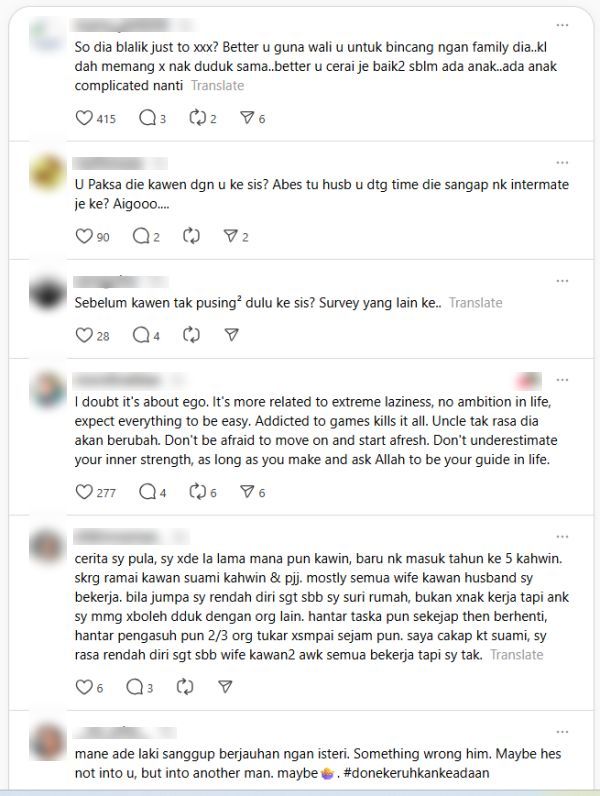 Perkongsian wanita berkenaan mengundang simpati warga maya, yang rata-ratanya memberikan kata semangat untuknya agar terus kuat berdepan ujian rumah tangga.