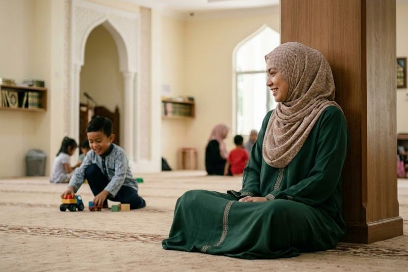 Ibu bapa perlu memantau anak di dalam masjid bagi mengelak mereka menganggu jemaah lain. -Gambar hiasan AI