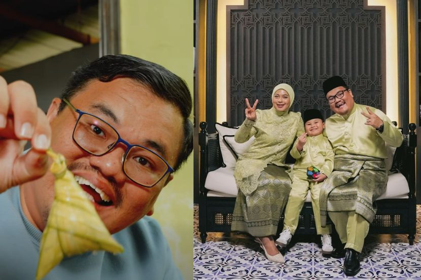 Abang Gan bersama isteri, Siti Mariah dan anaknya, Aaron Iskandar Gan ketika menyambut Syawal pada Sabtu. -Facebook Abang Gan