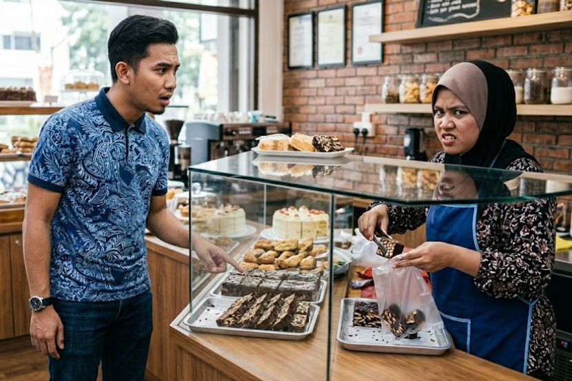 ADAB dan layanan mesra pelanggan merupakan antara kunci utama dalam perniagaan, malah sikap peniaga sering menjadi faktor membuatkan pelanggan kembali atau sebaliknya.Bagi seorang lelaki, hasrat ingin menyokong bisnes sebuah kedai kek bertukar menjadi detik kurang menyenangkan apabila mendakwa menerima layanan tidak mesra daripada staf premis itu. Menurut pengadu, dia singgah ke kedai tersebut selepas rakannya memuji keenakan kek batik yang dijual di situ.Layanan mesra menjadikan sesebuah perniagaan bertahan lama. -Gambar hiasan AI"Kita pergi sebab nak cuba. Masa sampai tu tengok betul-betul sedap. Nampak moist. "Saya pun tegur la staf tu, saya cakap... nampak sedap betul kek batik ni, pakai telur ke sebab nampak moist," katanya.ARTIKEL BERKAITAN: Pelanggan buang burger dibeli... Loya tengok peniaga pakai ‘glove’ sentuh tong sampah, terus pegang roti - “Maaf aku geli”ARTIKEL BERKAITAN: Bertempiaran lari, pelanggan restoran cemas gerai mercun terbakarLelaki itu juga turut segera memaklumkan kepada staf tersebut bahawa dia mahukan empat potongan kek batik berkenaan. Namun, soalan ringkas itu didakwa dibalas dengan nada tegas yang membuatkan dia terkejut."Tahu staf tu jawab apa? Tak payah nak slow-slow tanya resipi bang, nama pun kek batik mesti guna telur."Nada dia tegas dengan mata menjeling. Kita dalam hati... aik tanya macam tu pun marah," ceritanya lagi.Menurut lelaki itu, staf berkenaan turut menzahirkan ekspresi wajah yang tidak menyenangkan ketika memasukkan kek batik pesanannya ke dalam plastik."Marah agaknya. Dia letak je kek batik tu tanpa ucap terima kasih. Tapi memang tengok muka dia marah.Lelaki terkilan selepas mendakwa dilayan kurang mesra ketika membeli kek batik.Soalan mengenai bahan kek dibalas dengan nada tegas oleh staf.Staf didakwa bermasam muka dan tidak mengucapkan terima kasih.Pelanggan tetap mengakui kek tersebut sedap.Netizen berkata layanan buruk boleh jejaskan perniagaan.Ringkasan ini dijana oleh AI"Nak tegur kat situ ramai la pula orang... takut dia malu nanti. Kita baru nak sokong sebab kek batik dia memang sedap."Apa salahnya cakap elok- elok. Nak meniaga kan. Jagalah sikit PR (perhubungan awam) tu," katanya.Perkongsian itu menarik perhatian netizen yang mendakwa sikap staf sedemikian boleh merosakkan perniagaan itu."Sedap macam mana pun kalau begini layanannya, saya tak kan beli lagi. Sekian."Kalau saya ini pertama dan terakhir. Memang akan senarai hitam kedai macam ni," komen netizen.