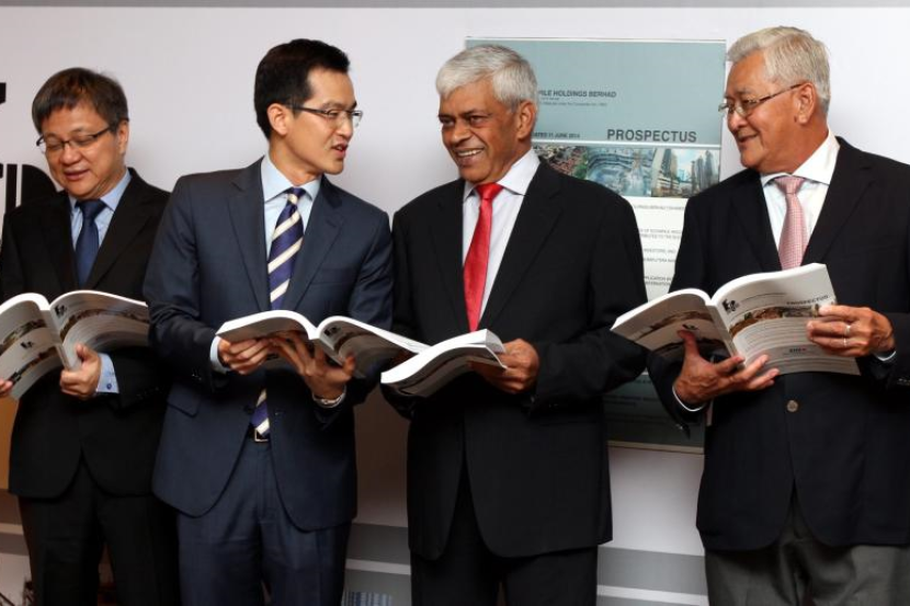 Dari kiri: Pang menyaksikan Prospektus Econpile bersama Ketua Perkhidmatan Korporat dan Pelaburan Perbankan Kumpulan RHB Investment Bank Berhad, Ong Ju Yan; Pengerusi Enopile, Krishan A/L C.K. Menon dab Pengarah Urusan Kumpulan, The Cheng Eng.