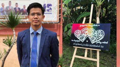 Hebat, pemuda ini mahir tulis khat walau kidal! Berbaloi dalami ilmu, kini dah boleh jana pendapatan